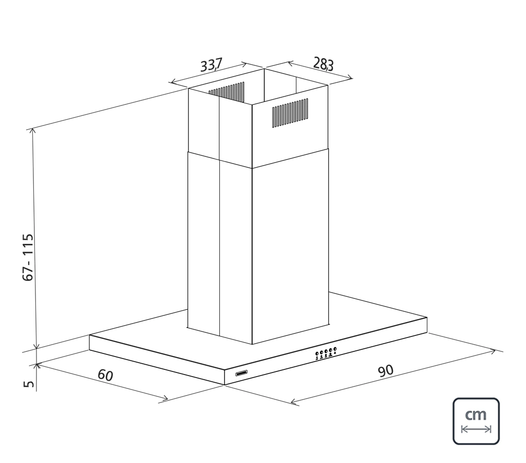 Observação: Para cozinhas com o pé direito de até 4m a Tramontina oferece chaminés complementares em aço inox, com mesmo acabamento da coifa - a compra deste material ocorre por meio da Rede de Serviço Autorizado.