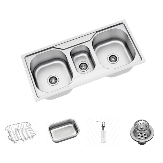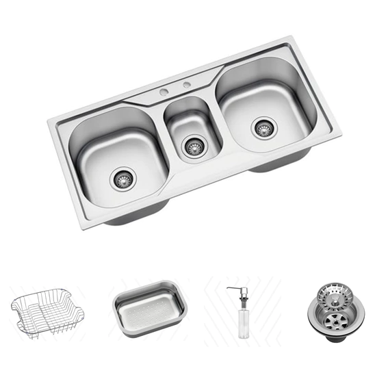 A CUBA FUNZIONALE DEBACCO 232 acompanha cesto inox, dosador de detergente e cesto escorredor aramado garantindo diversas funções ao mesmo tempo.Seu acabamento é em aço inox acetinado de 1.0 mm de espessura, com design arredondado, proporciona benefícios e facilidades no desenvolvimento das tarefas diárias, através das suas duas cubas, e cuba central auxiliar. A FUNZIONALE 232 foi pensada para atender uma família grande, garantindo o máximo de organização e facilidade de limpeza.